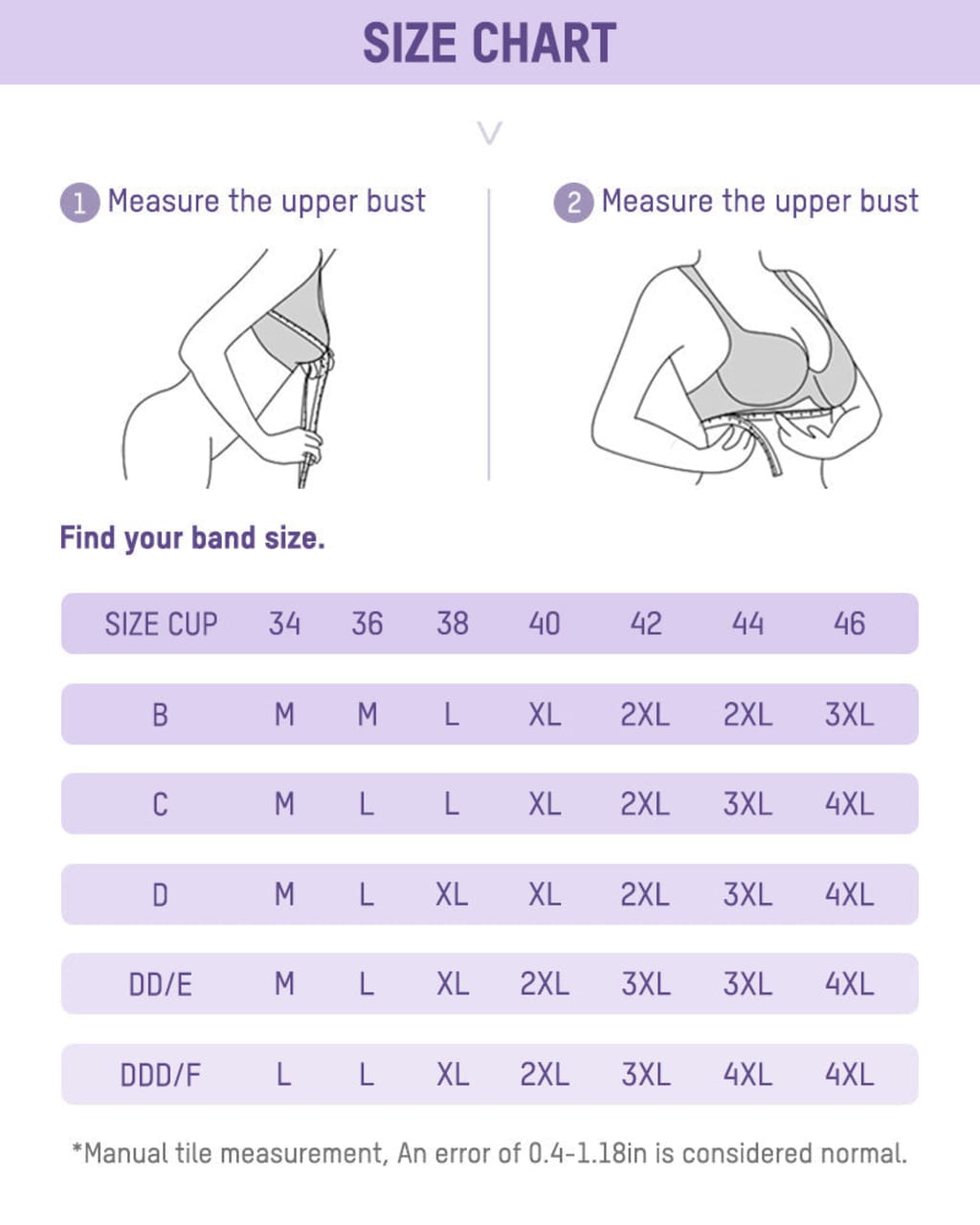 TruBra is available in sizes 32A through 40D, with adjustable straps and an extension buckle for a custom fit.